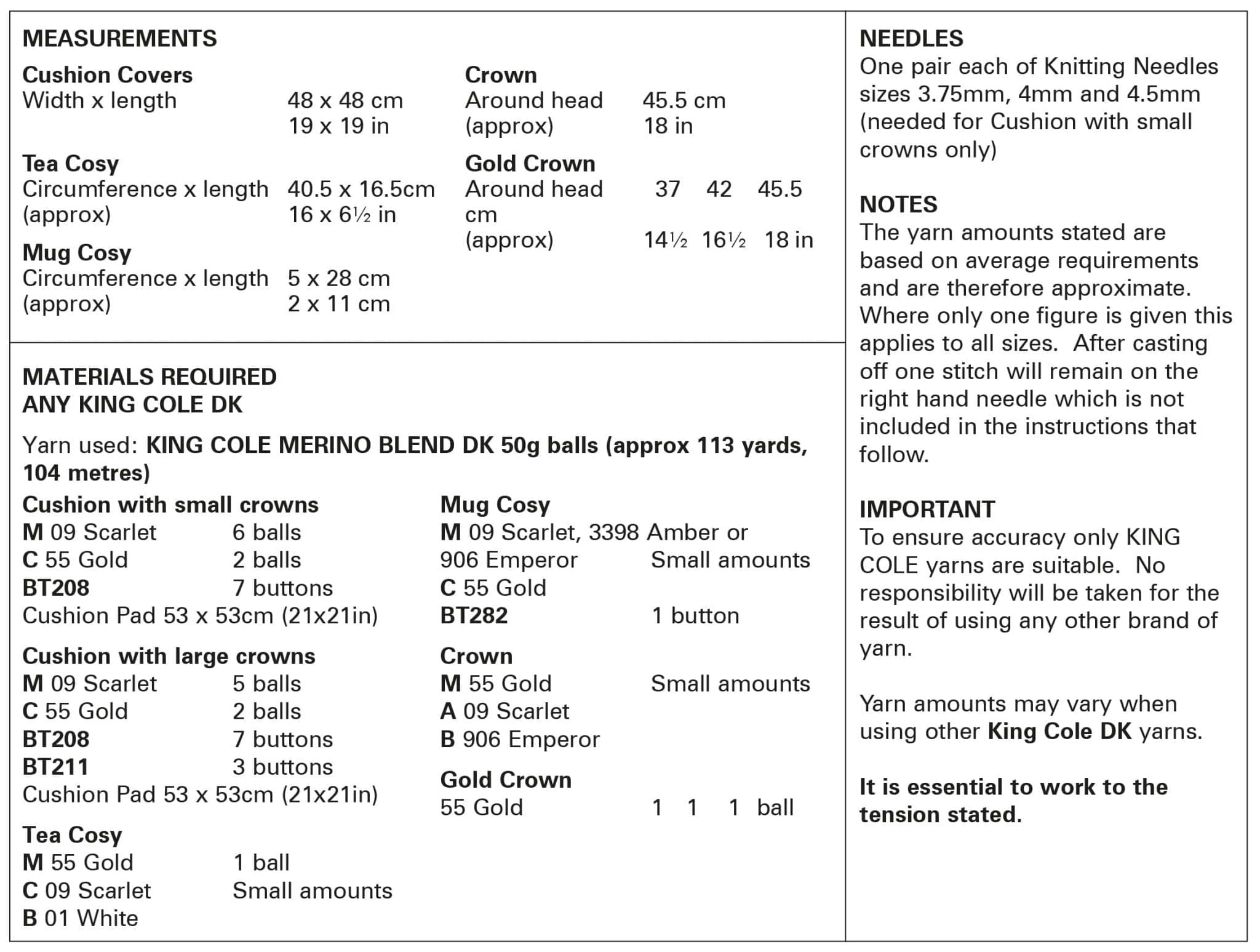 King Cole Pattern 6025