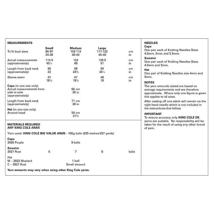 Cape, Sweater and Hat: Knitted in King Cole Big Value Aran