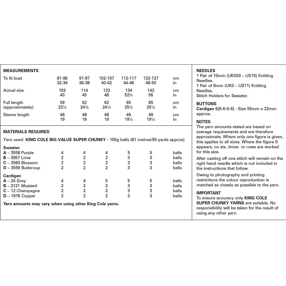 King Cole Pattern 6272