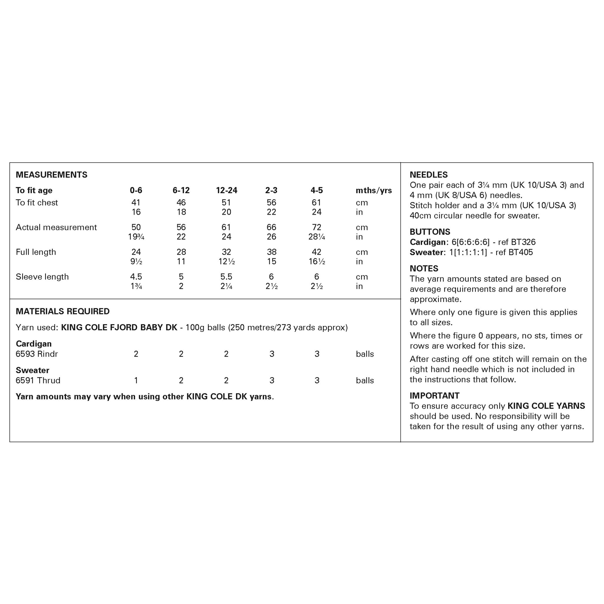King Cole Pattern 6465