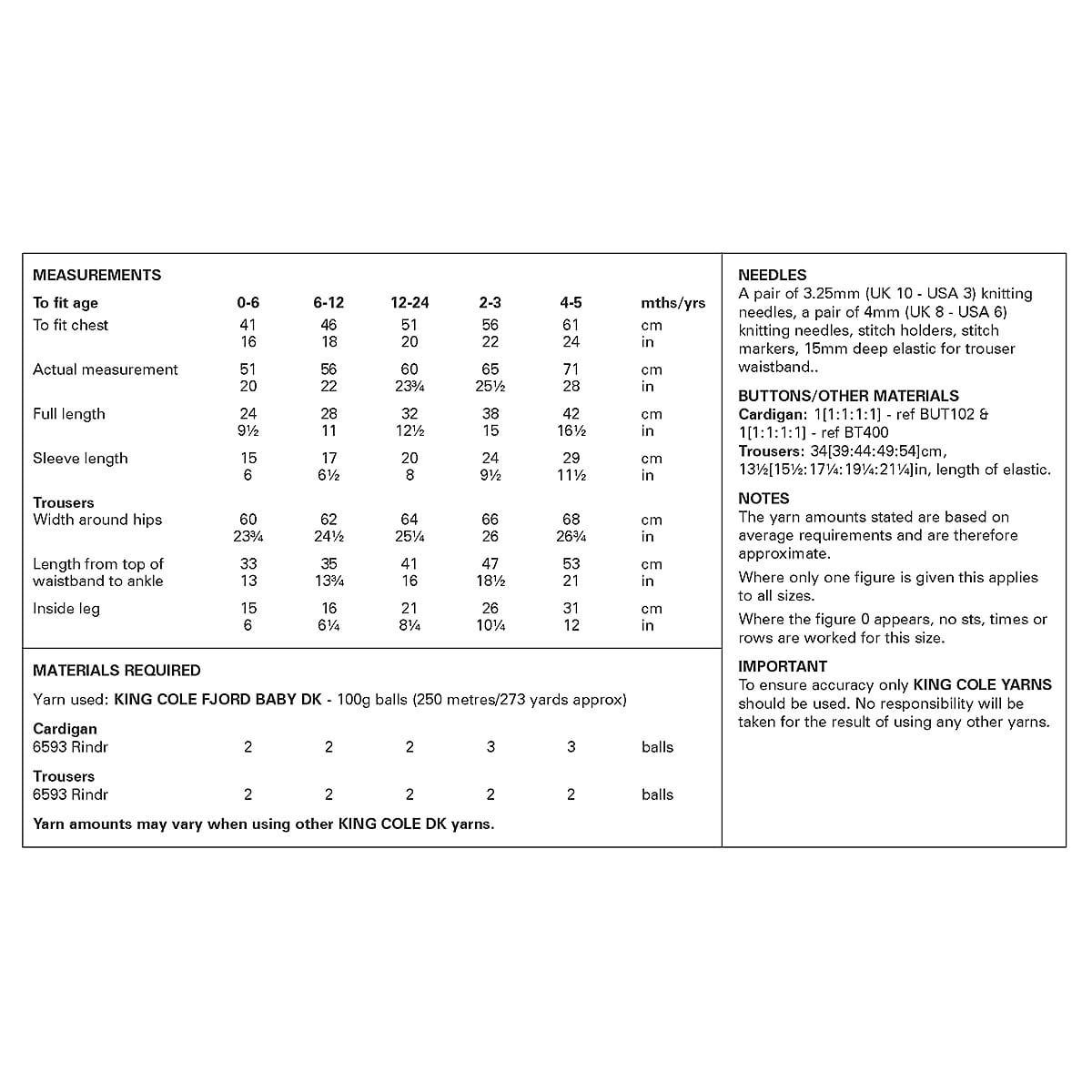 King Cole Pattern 6460