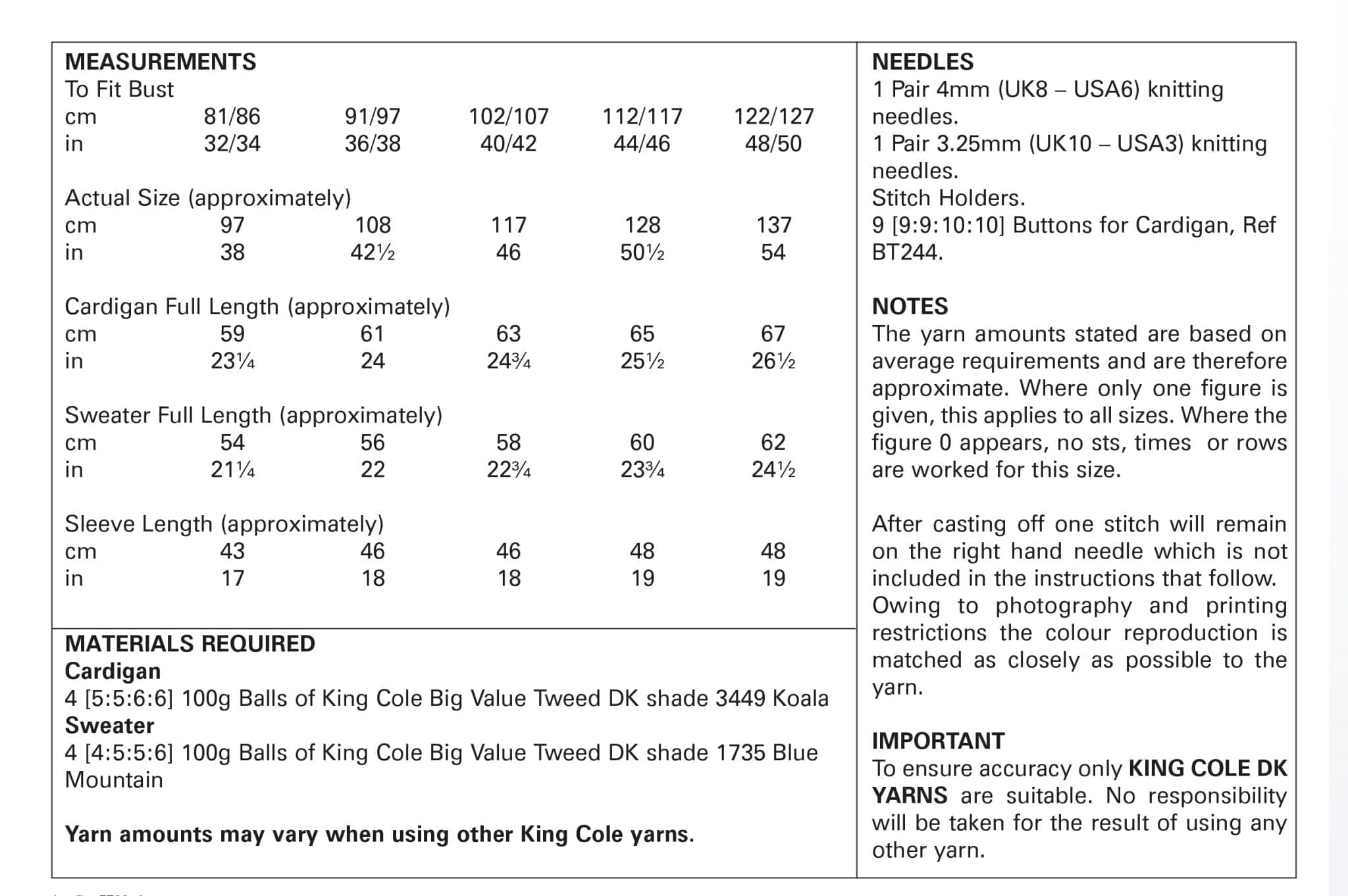 King Cole Pattern 5708