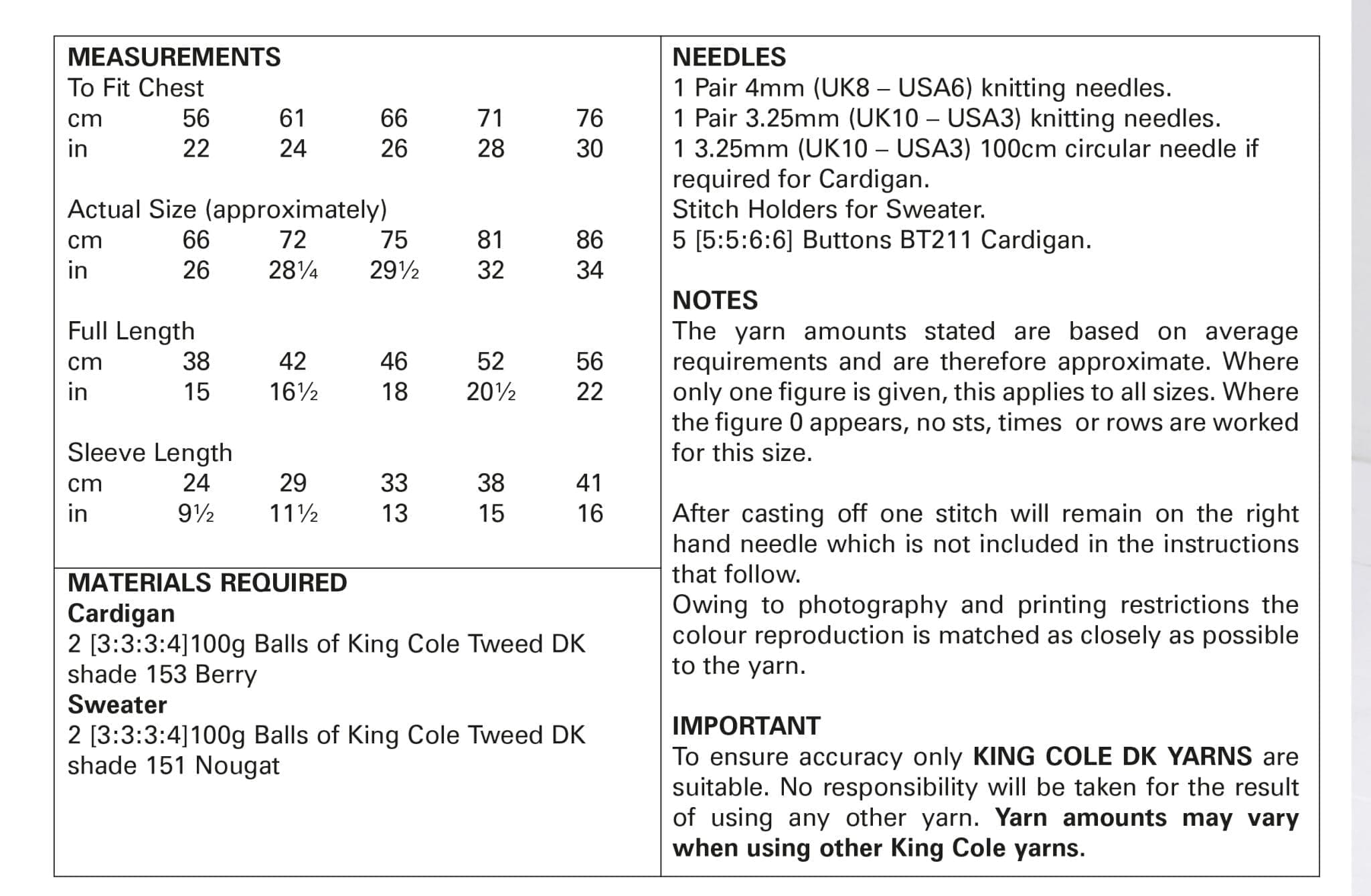 King Cole Pattern 5705