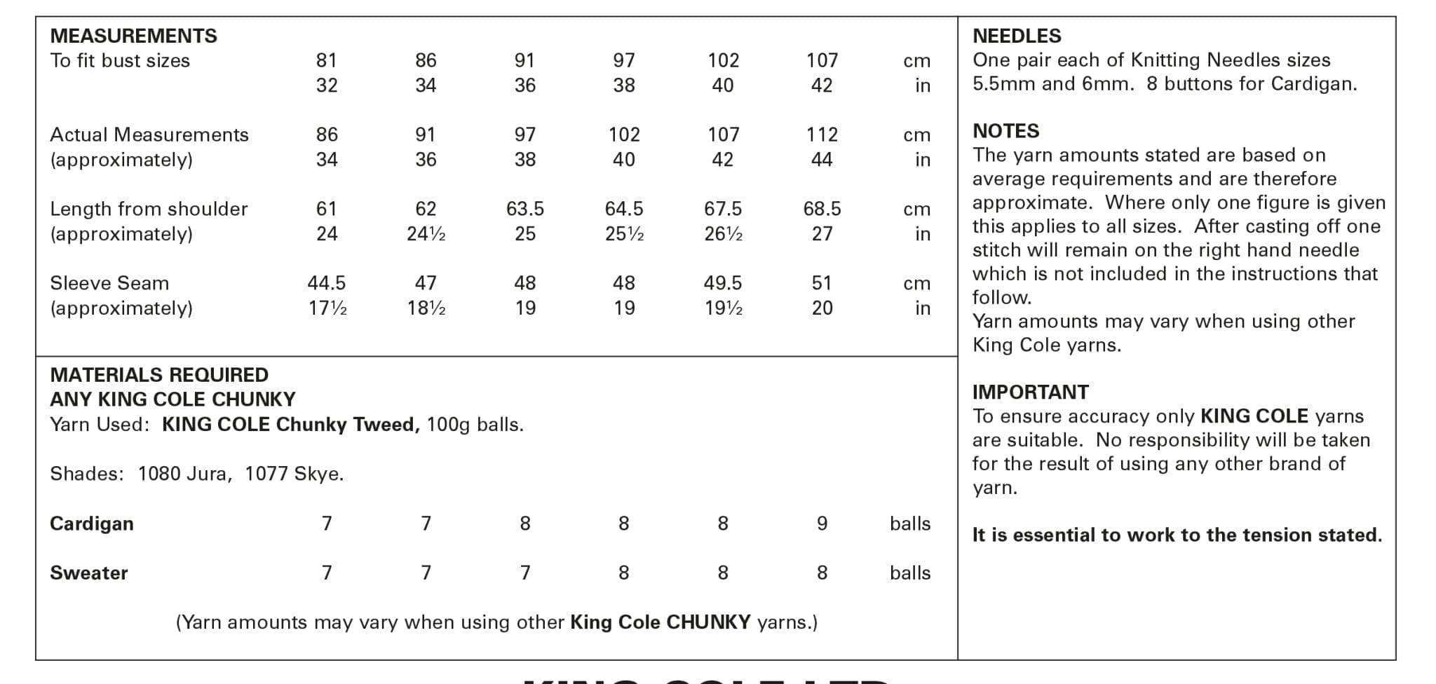 King Cole Pattern 4743