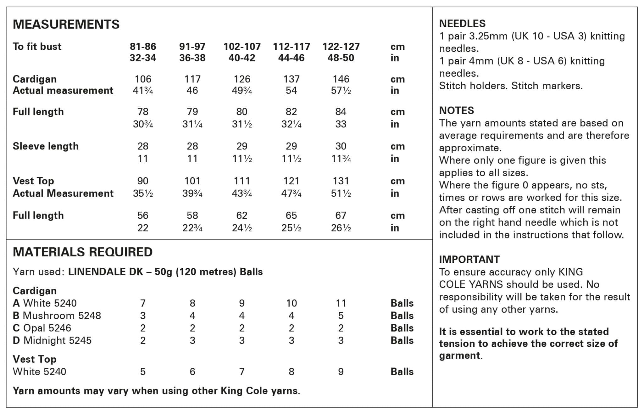 Cardigan & Vest Top Knitted in Linendale DK