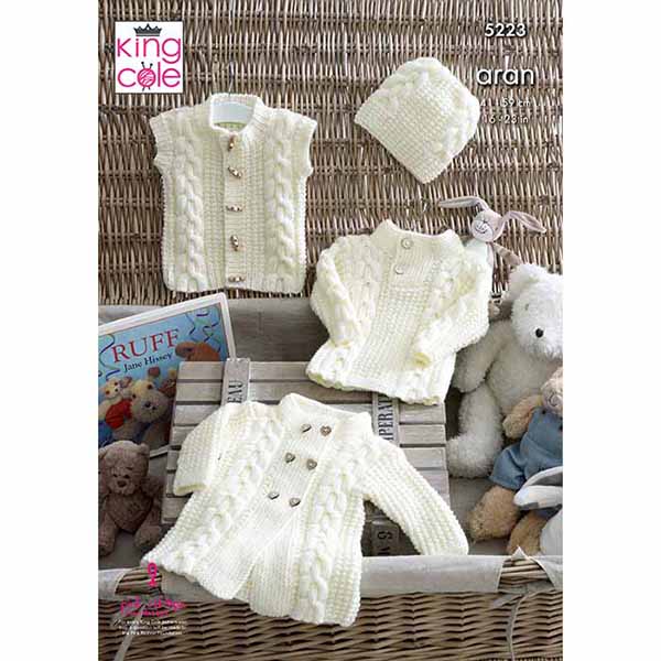 Coat, Sweater, Gilet & Hat Knitted in Comfort Aran