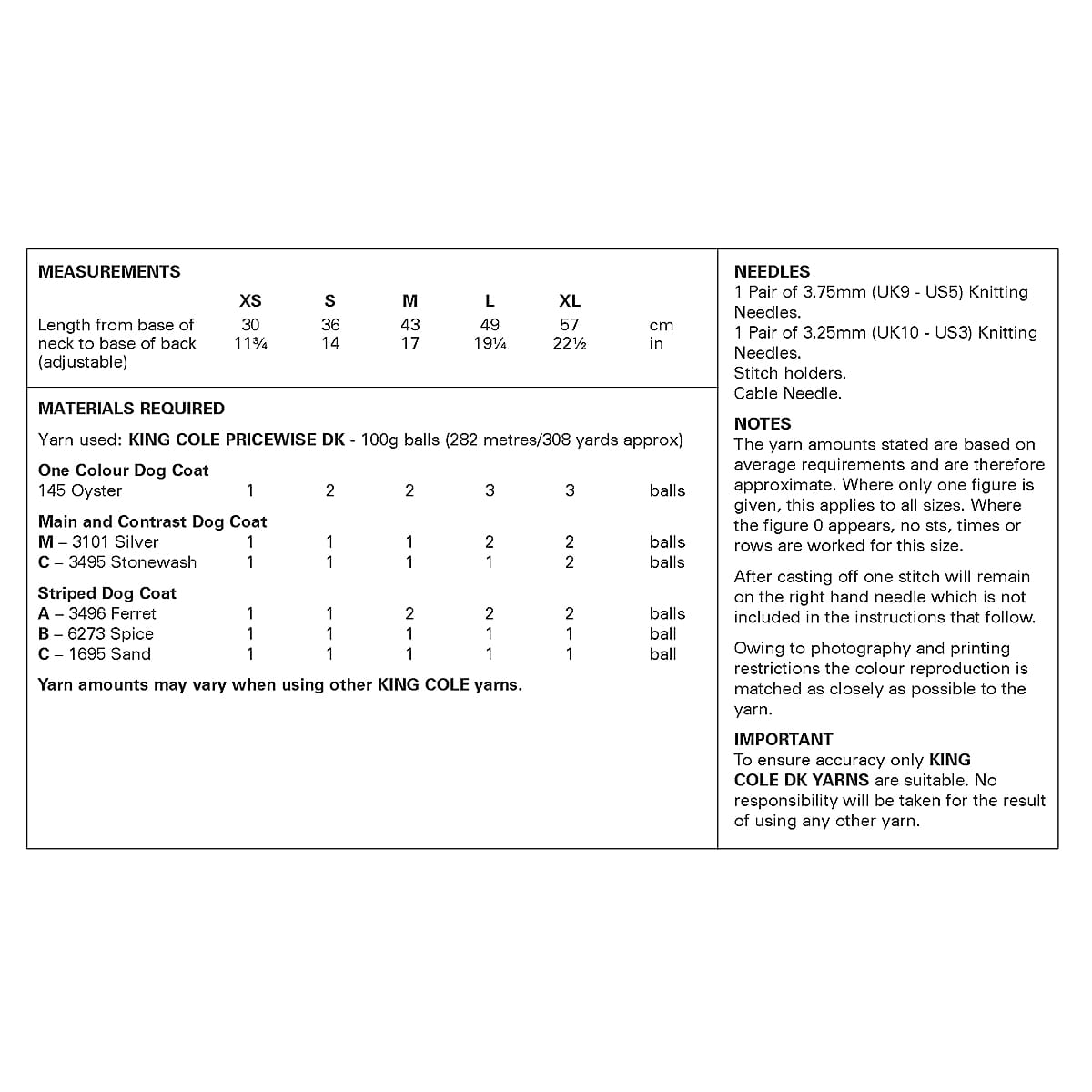 Dogs Coats knitted in Pricewise DK