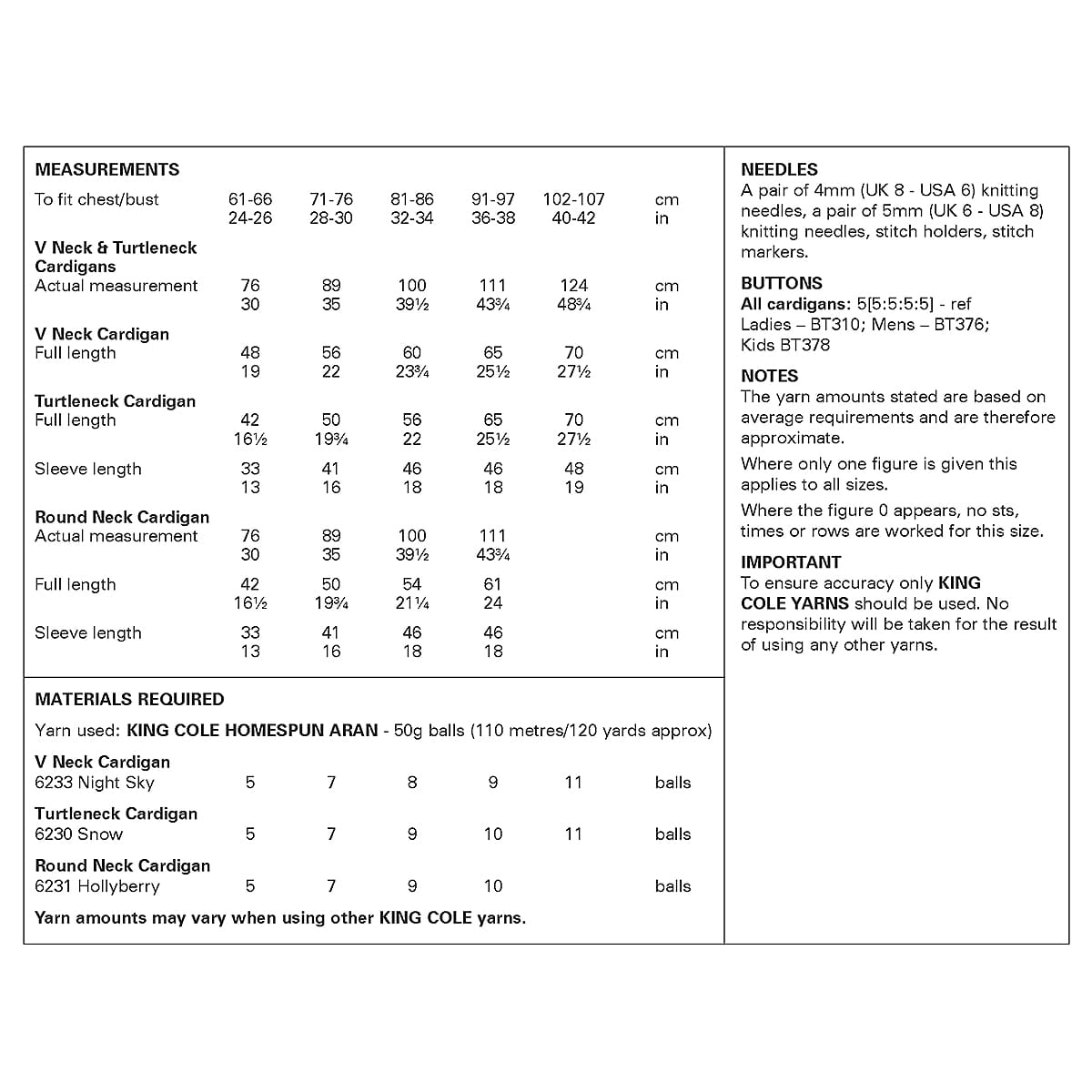 King Cole Pattern 6417
