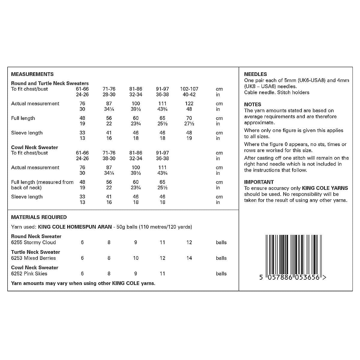 King Cole Pattern 6304