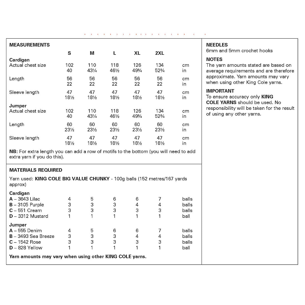 King Cole Pattern 6489