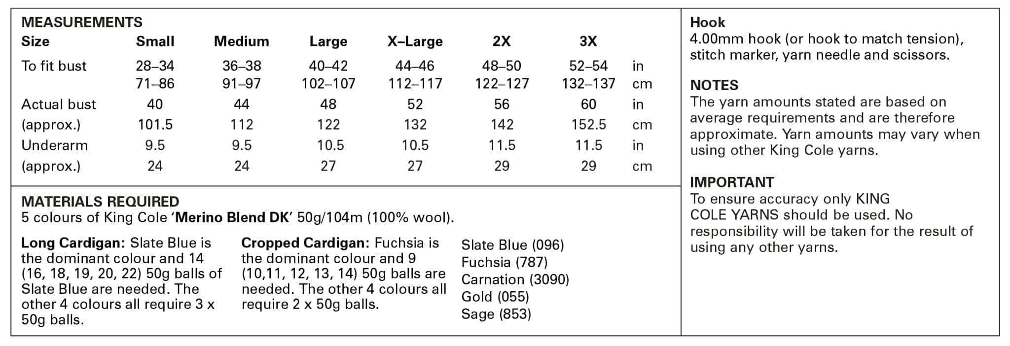Granny Square Pattern 5943: Long Cardigan and Cropped 1/2 Sleeve Cardigan Crocheted in Merino Blend DK