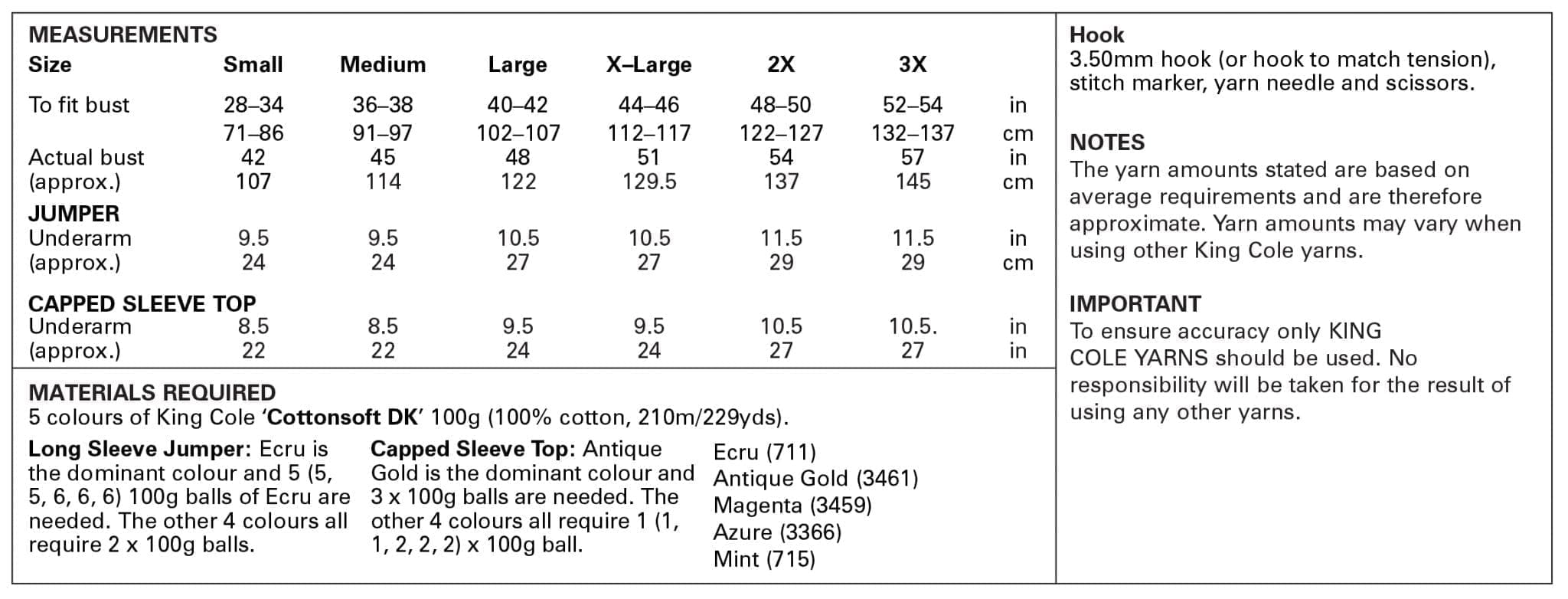 Granny Square Pattern 5944: Jumper and Alternative Capped Sleeve Top Crocheted in King Cole Cottonsoft DK