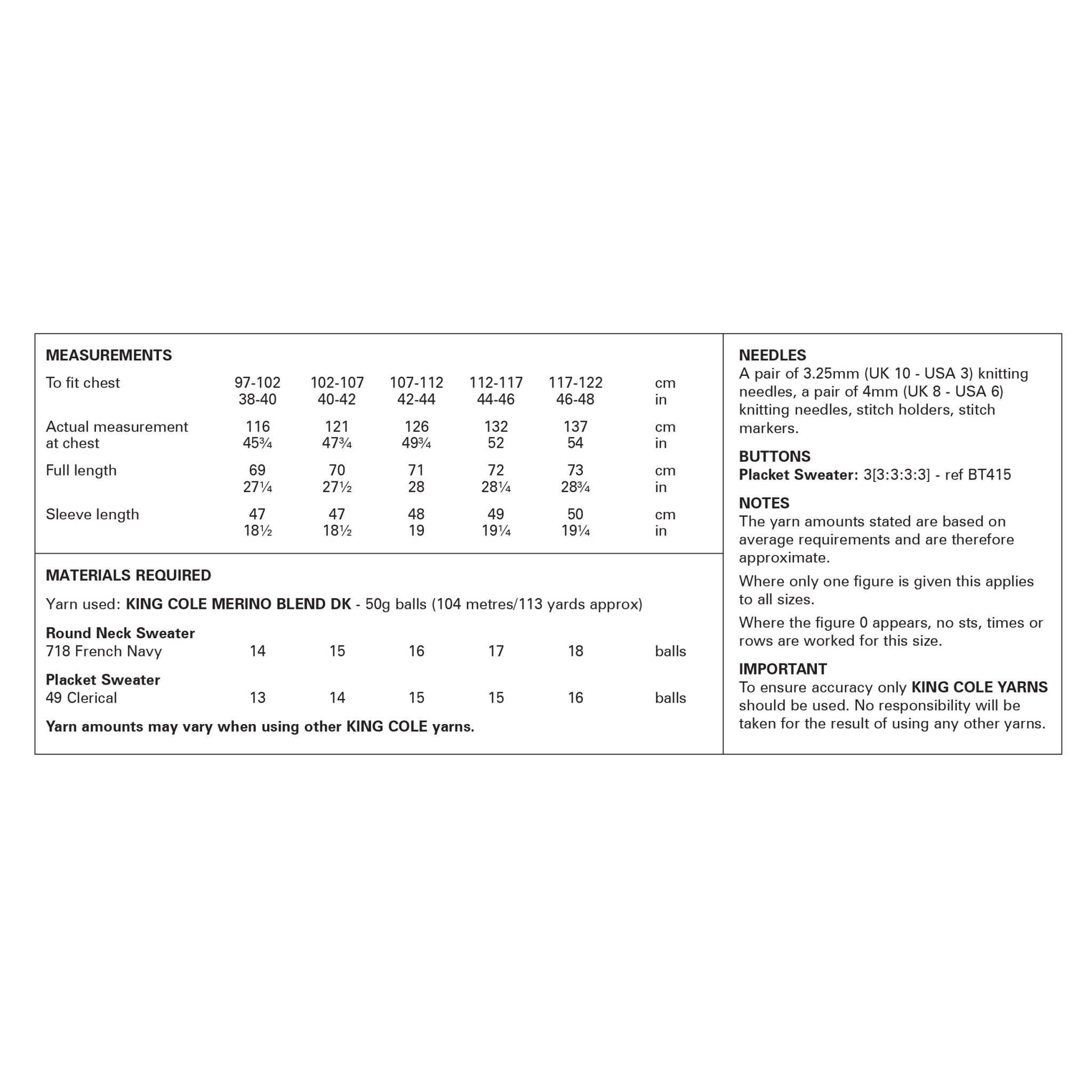 King Cole Pattern 6373