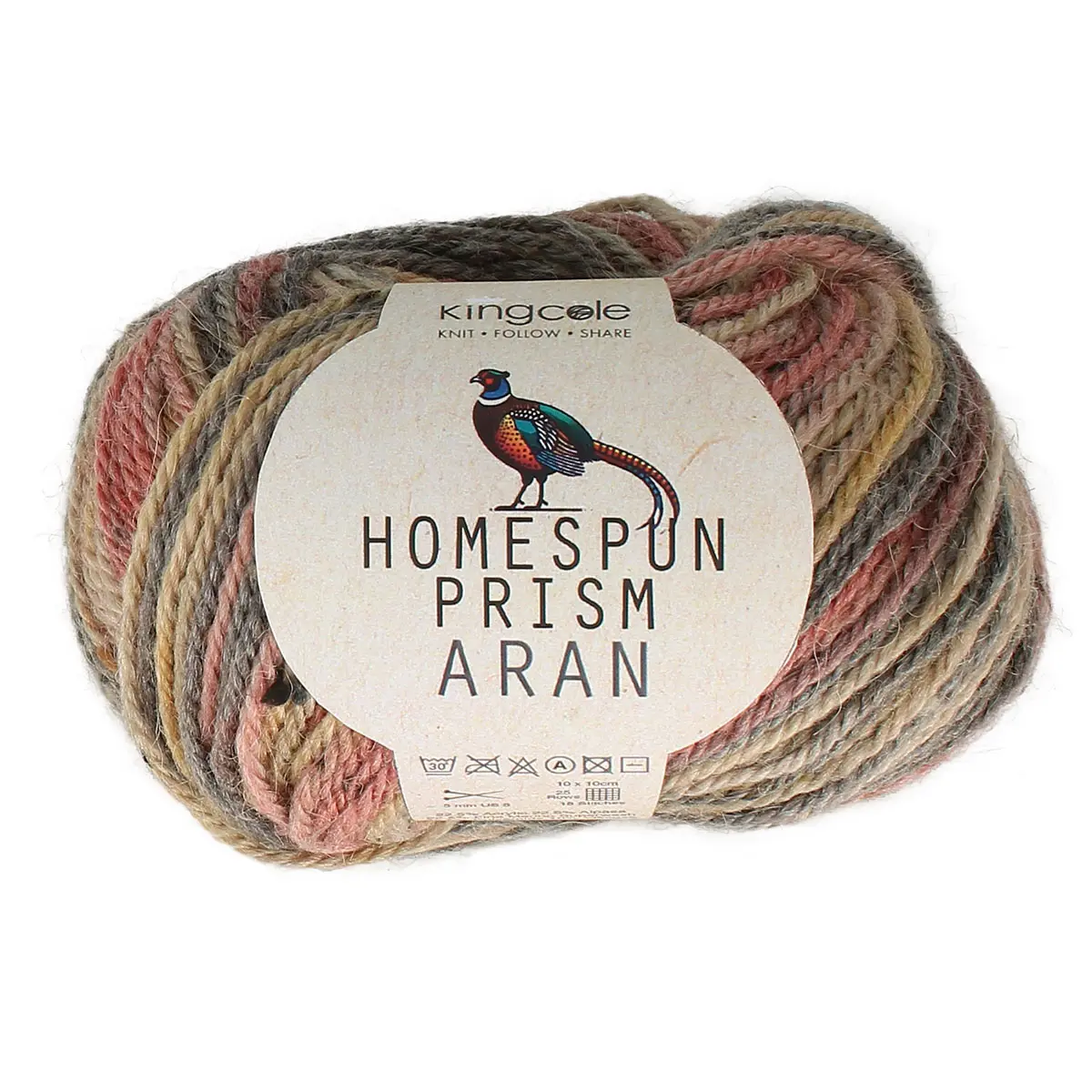 Say hello to the latest addition to our Homespun family: Homespun Prism Aran. This soft, richly tonal yarn offers a refined twist on our popular Prism DK—now in a versatile Aran weight with a blend of 22.5% Fine Merino Superwash, 22.5% Alpaca, 30% Acrylic, 22.5% Polyamide, 2.5% Viscose