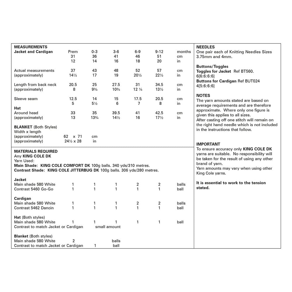 King Cole Pattern 6292