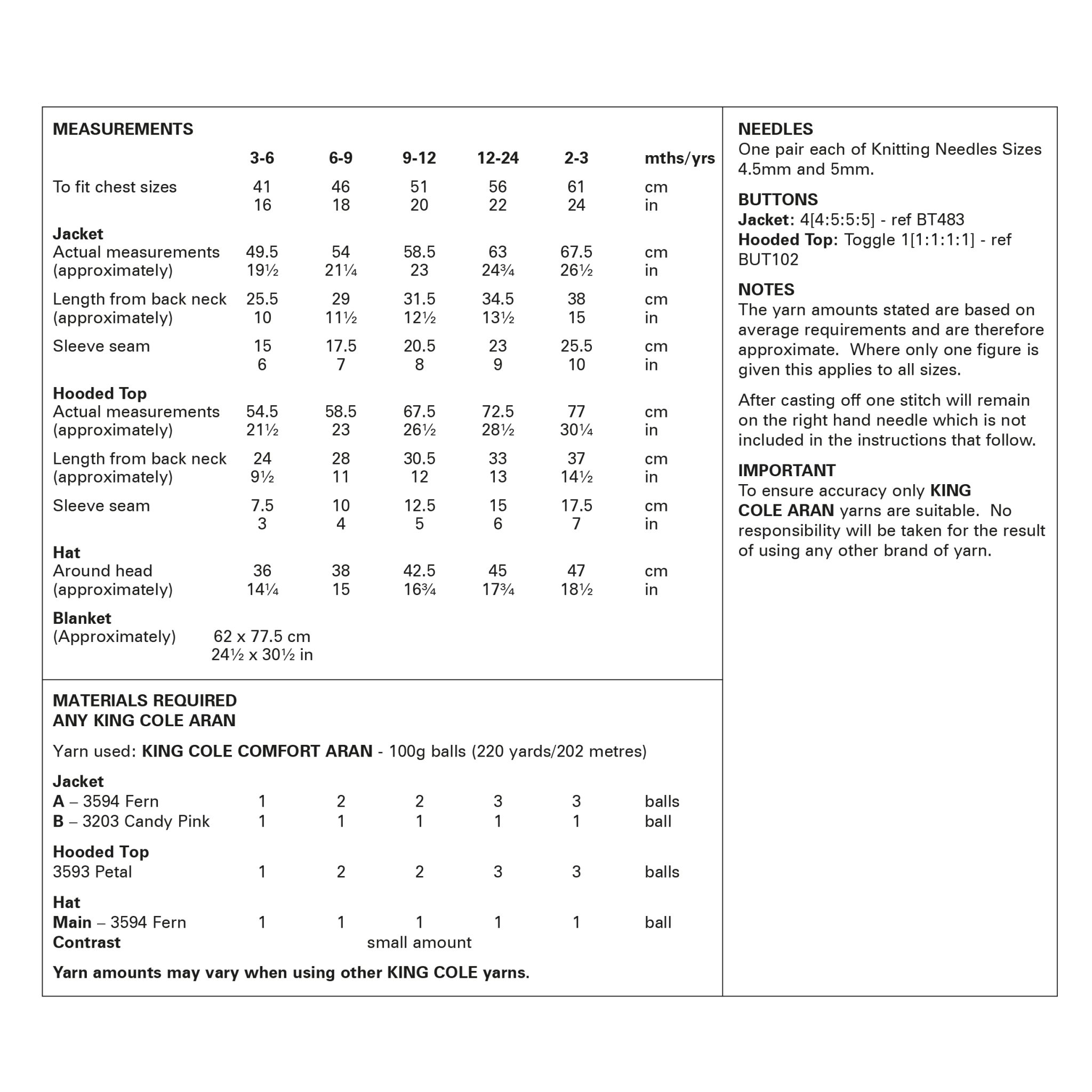 Jacket, Hat, Hooded Top and Blanket in Comfort Aran