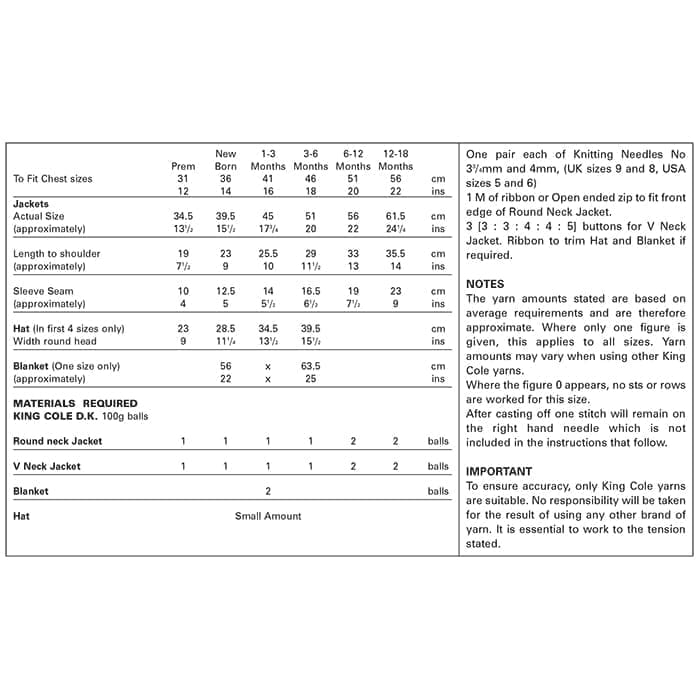 Jackets, Hat and Blanket Knitted in any King Cole DK