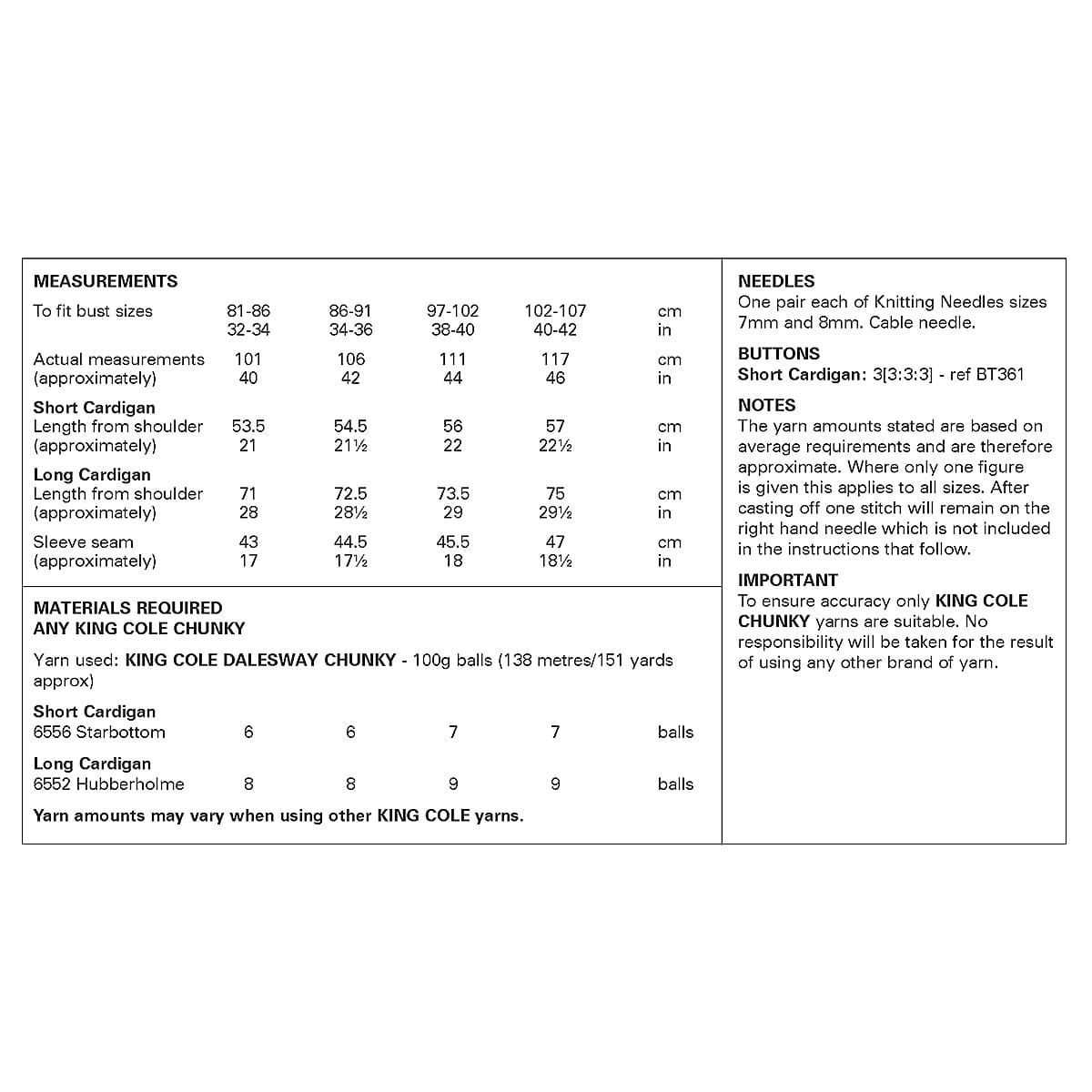 Ladies’ Cardigans knitted in Dalesway Chunky