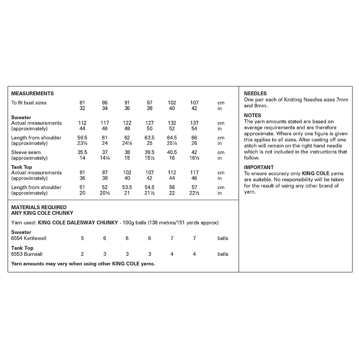 Ladies’ Sweater and Tank Top knitted in Dalesway Chunky