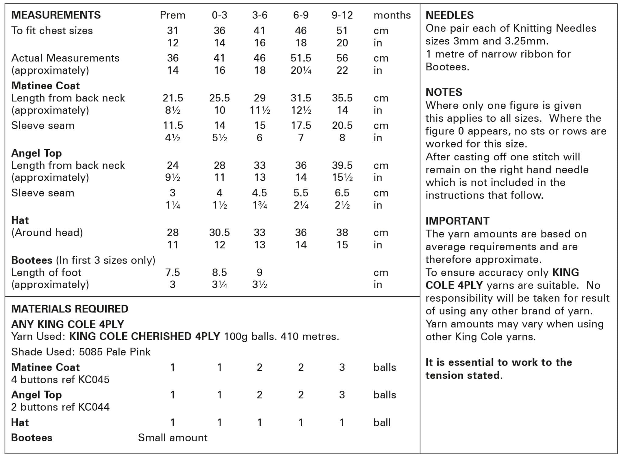 Matinee Coat, Angel Top, Hat & Bootees Knitted in Cherished 4Ply