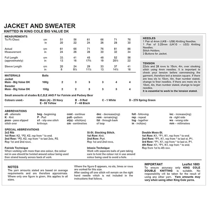 Pudsey Jacket and Sweater Knitted with Big Value DK