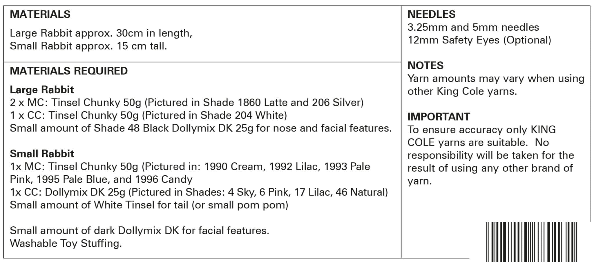 Rabbits Knitted with Tinsel Chunky & Dollymix DK