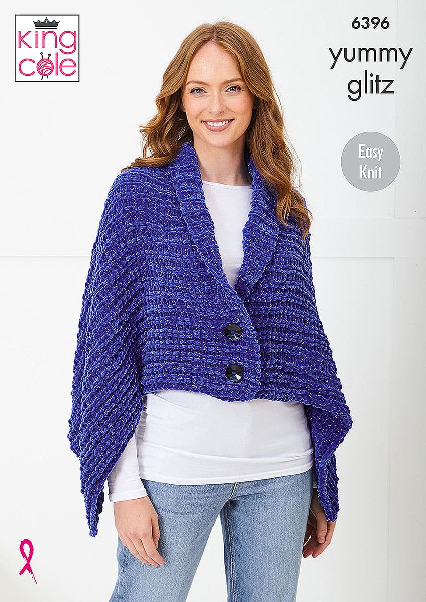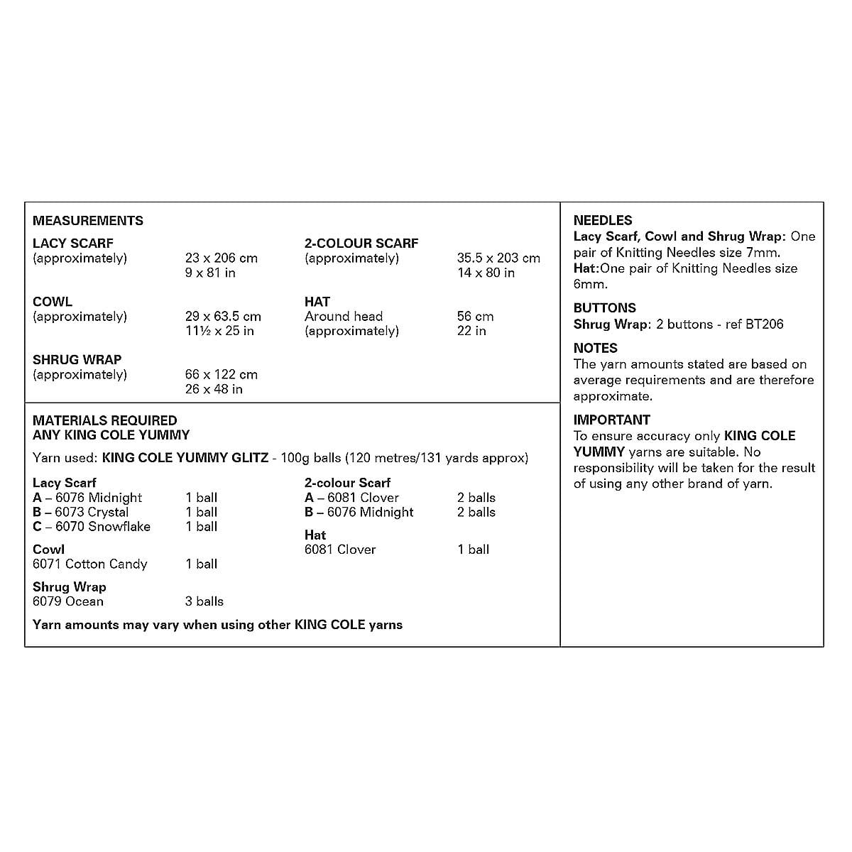 Scarves, Cowl, Shrug Wrap and Hat knitted in Yummy Glitz