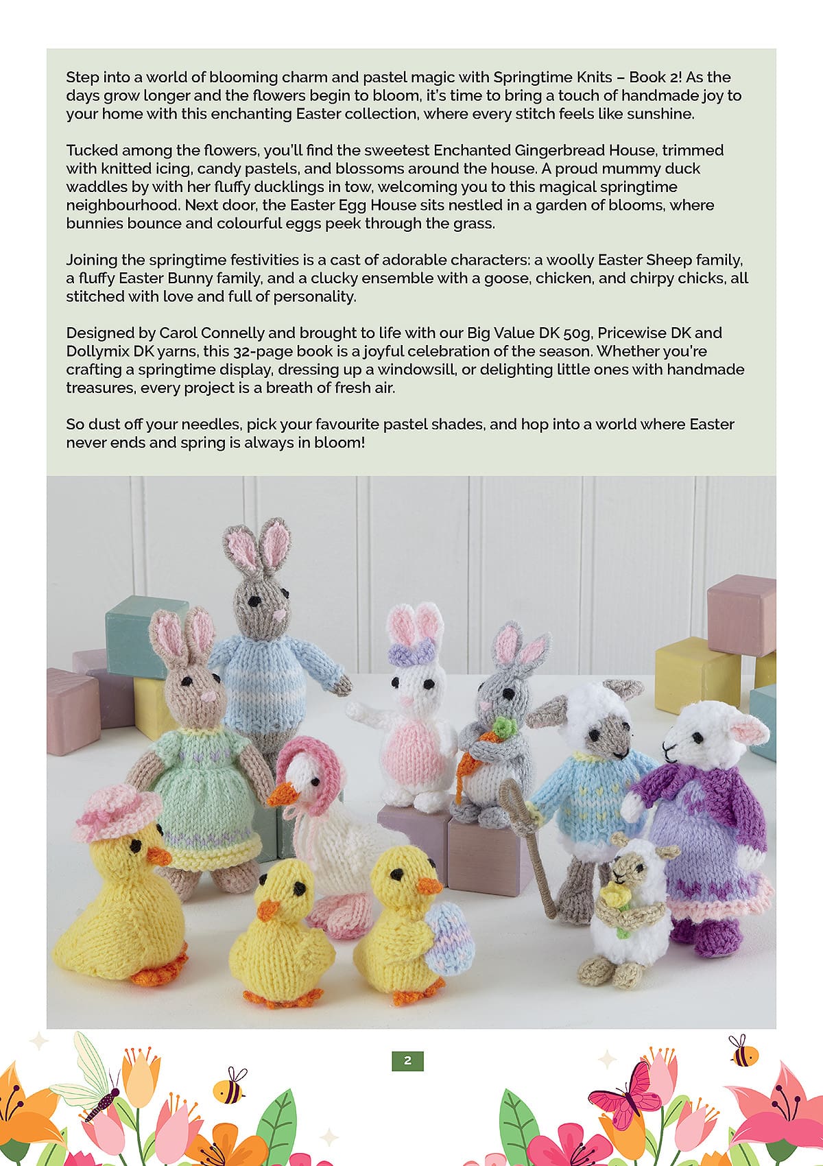 Designed by Carol Connelly and brought to life with King Cole’s Big Value DK 50g, Pricewise DK and Dollymix DK yarns, this 26-page book is a joyful celebration of the season. Whether you’re crafting a springtime display, dressing up a windowsill, or delighting little ones with handmade treasures, every project is a breath of fresh air.