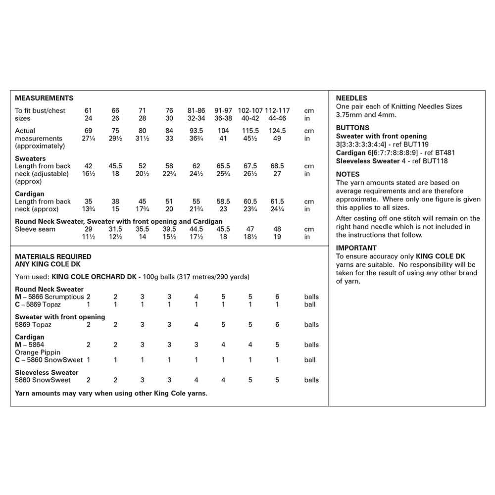 King Cole Pattern 6265