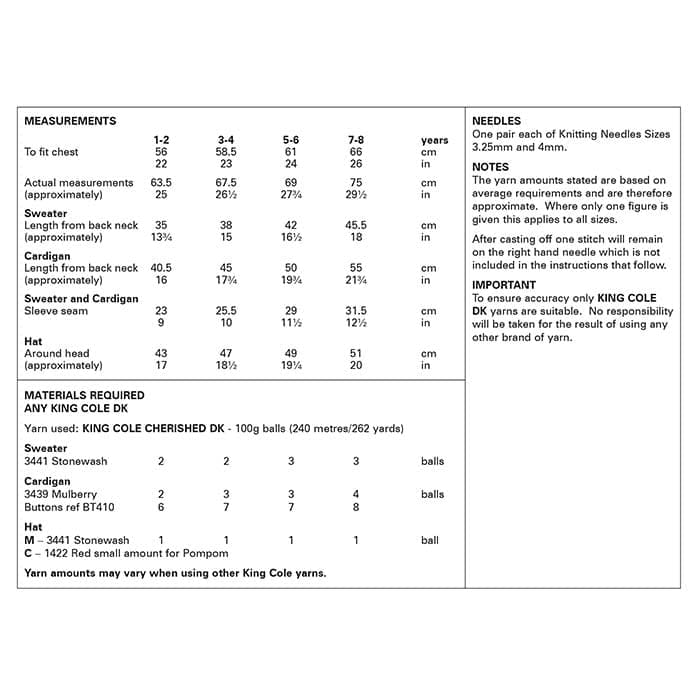 Sweater, Cardigan and Hat: Knitted in King Cole Cherished DK