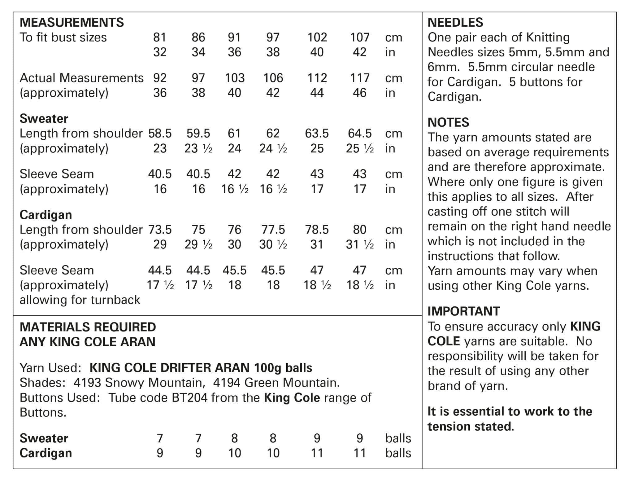 King Cole Pattern 5735