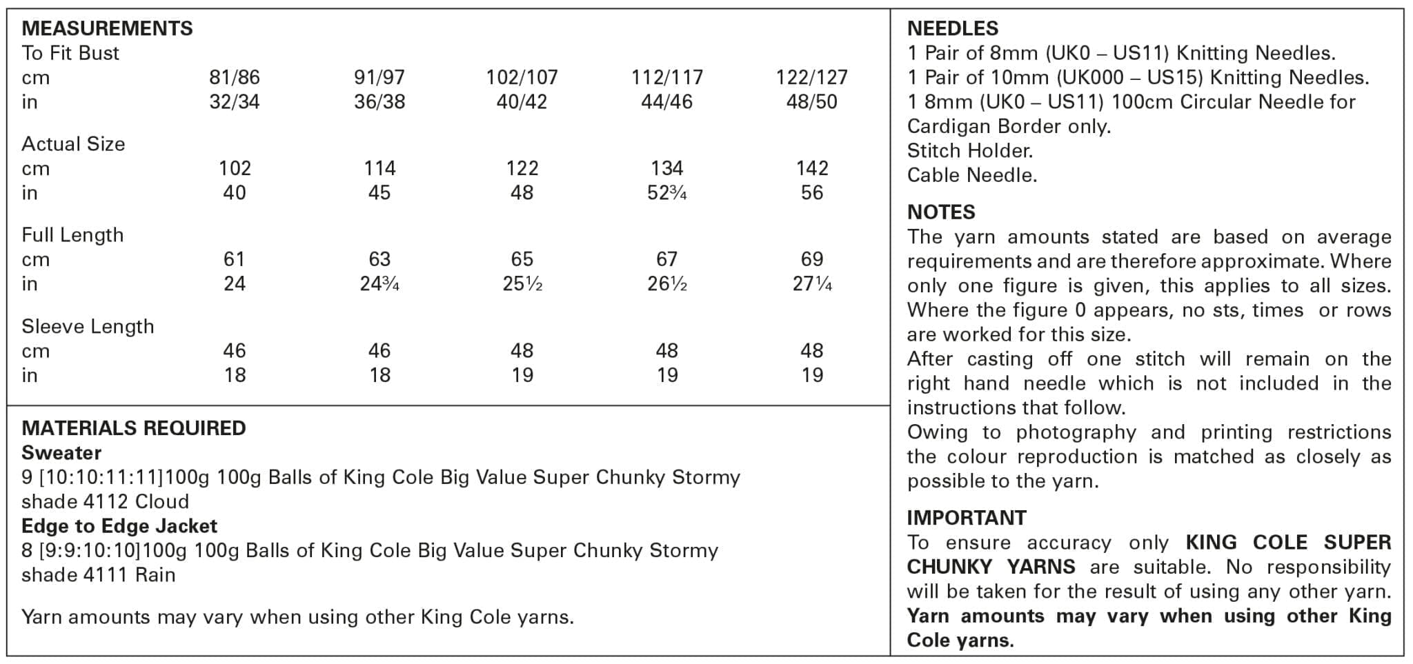 Sweater & Edge to Edge Jacket Knitted in Big Value Super Chunky Stormy