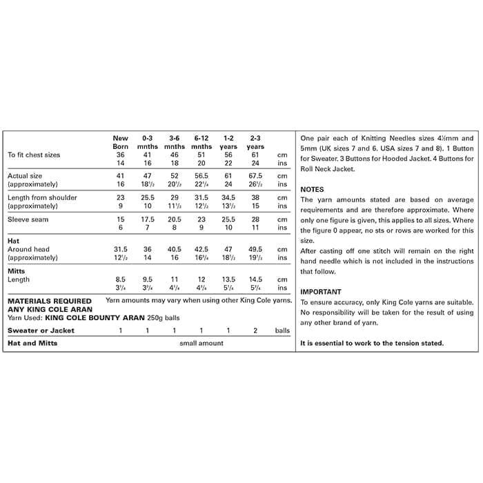 King Cole Pattern 2905