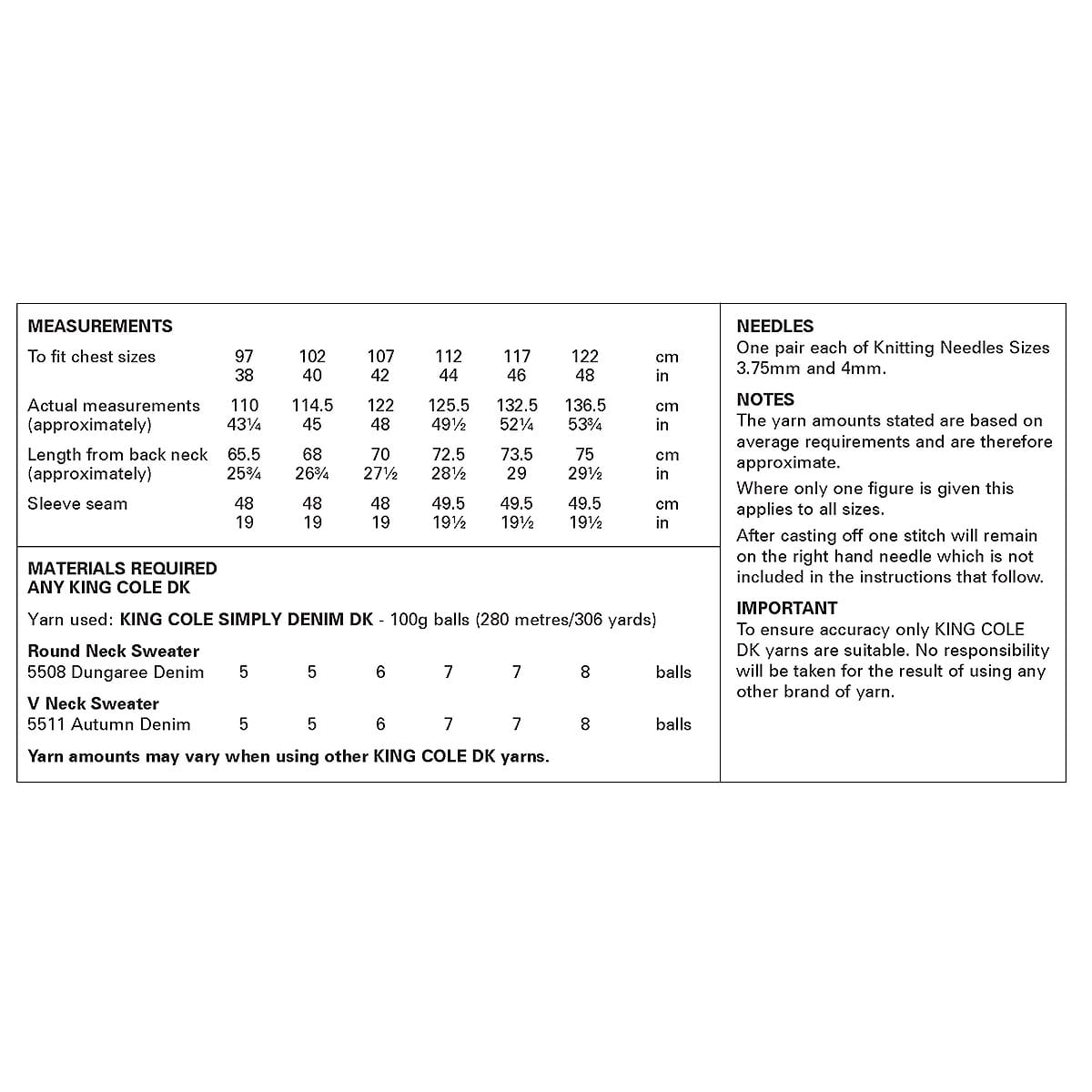 King Cole Pattern 6476