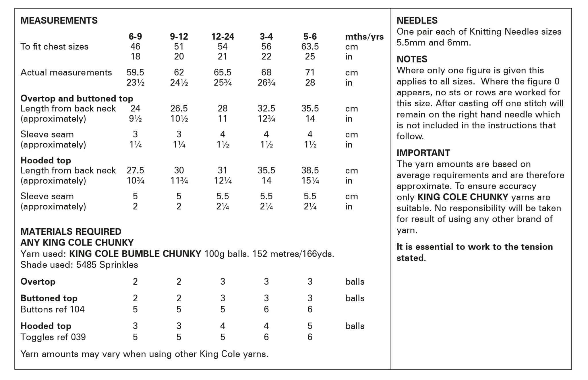 King Cole Pattern 6086