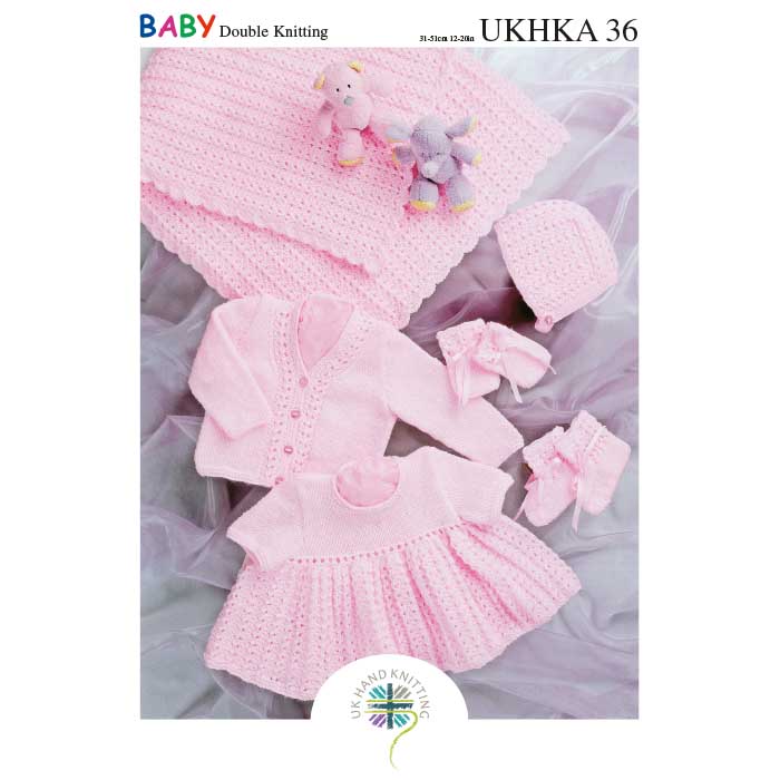 UKHKA 36: Shawl, Dress, Cardigan, Hat, Mittens & Bootees