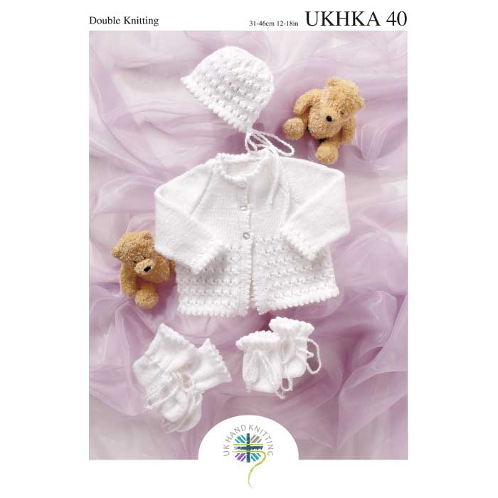 UKHKA 40: Cardigan, Hat, Bootees & Mittens