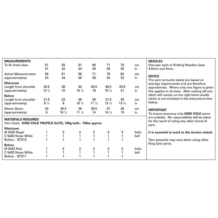 King Cole Pattern 6054
